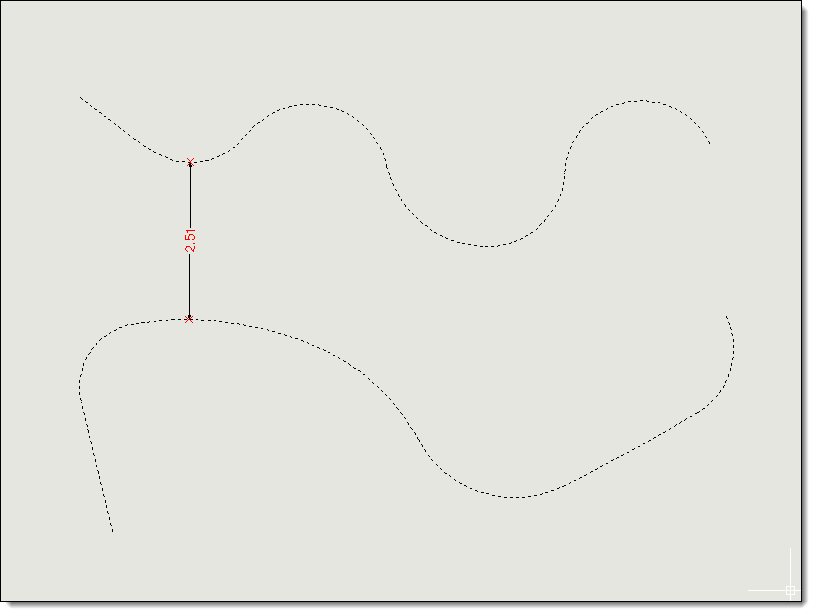 | Seleccione las 2 polilíneas entre las que quiere encontrar los puntos más proximos. El programa calculará estos puntos y dibujará una cota alineada entre ellos para marcar la distancia existente entre las polilíneas. |